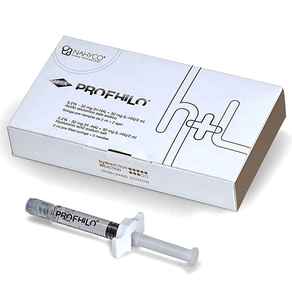 - Profhilo حاوی ۳۲ میلی گرم HA با وزن مولکولی کم (۱۰۰-۱۰۰Kda) و ۳۲ میلی گرم HA با وزن مولکولی بالا (۱۱۰۰-۱۴۰۰Kda) است. این یکی از بالاترین غلظت HA در بازار است که در مجموع ۶۴ میلی گرم HA در یک سرنگ ۲ میلی لیتر است.
