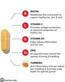 یک مکمل عالی روزانه با ویژگی تغذیه کنندگی مو با ترکیبات کلملا گیاهی و مطالعه شده بالینی است که به حفظ موهای قویتر، ضخیمتر و افزایش رشد آنها کمک میکند. ترکیب اختصاصی آن از ویتامینها، مواد معدنی و گیاهان ضروری دوستدار مو ساخته شده است و همچنین دارای یک مجموعه فوقالعاده آنتیاکسیدان قوی بوده که به طور همزمان برای تحریک چرخه رشد مو، حفظ و استحکام فولیکولها از درون به بیرون، با هم کار میکنند. در انتها مویی قوی و پرپشت و حجیم را برای شما به ارمغان میآورند.